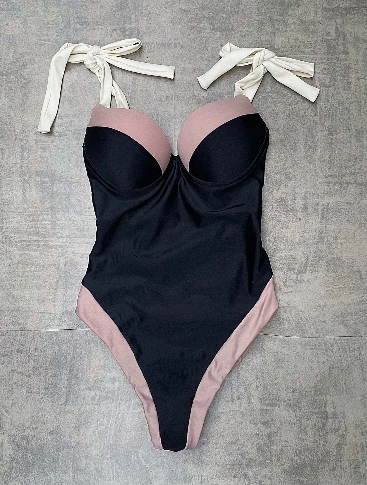 Elegante y Sexy con Forro Extra Grueso para mejor ajuste , copas Push Up , tiras gruesas para atar en hombros y corte cheeky con fruncido en derrier , lleva accesorios en Baño de oro